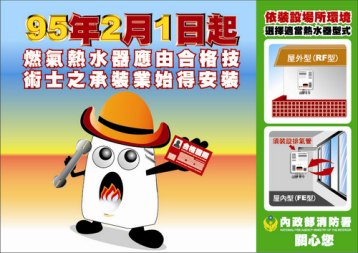2.要有(勞委會核發)合格的燃氣熱水器技術士證照 (證照-每2年須複檢)