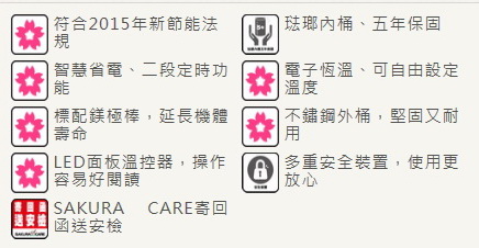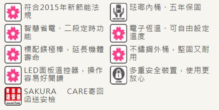 櫻花電熱水器嚴謹的品質要求,儲熱式首創內桶保固五年不漏水,瞬熱式全方位安全防護系統,品質有保障、安全又舒適。購買電熱水器系列更享有寄回函送安檢「永久免費安全檢查」服務。