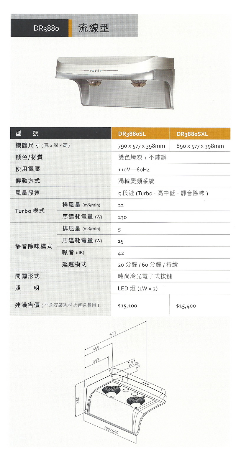 DR3883 流線型除油煙機-渦輪變頻 智能風控系列