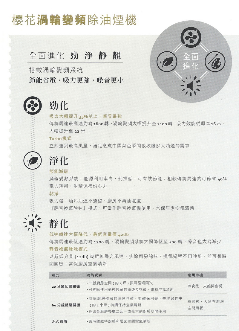 5段速 (Turbo /高/中/低/ 靜音除味) |
